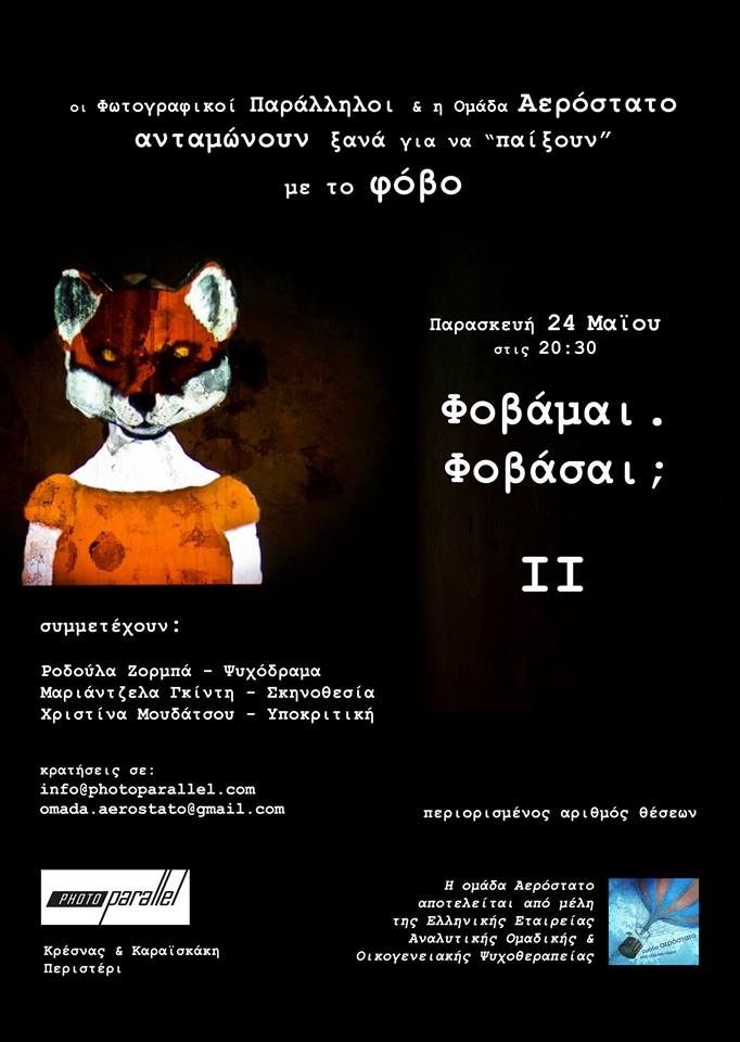 Το συναίσθημα του φόβου θα αποτελεί πάντα αναπόσπαστο στοιχείο της ύπαρξης μας. Όσο όμως κι άν αυτό είναι γενικά αποδεκτό , ο καθένας μας ζει το προσωπικό του φόβο. Ο φόβος βιώνεται και καθρεφτίζεται ” εξατομικευμένα” , γι΄αυτό και έχει πάντα μια προσωπική σφραγίδα.